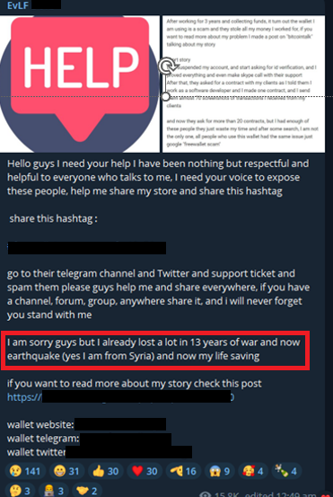 One of the deleted messages saved by our Threat Intelligence Platform: