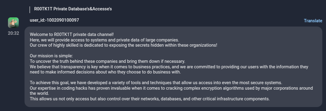 In April 2024, R00TK1T launched a private Telegram channel, charging $500 per subscriber with the promise of exclusive breach data. Group-IB monitored the channel and confirmed that every piece of data posted was from old public leaks. Still, the group reportedly attracted 20 paying members—netting $10,000 by recycling freely available information.