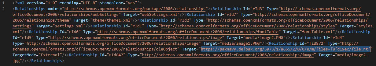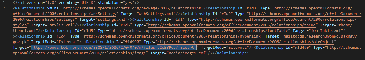 In /word/_rels/document.xml.rels, the malicious document contains a link to download a template: hxxs://pnwc[.]bol-north[.]com/5808/1/3686/2/0/0/0/m/files-a2e589d2/file.rtf