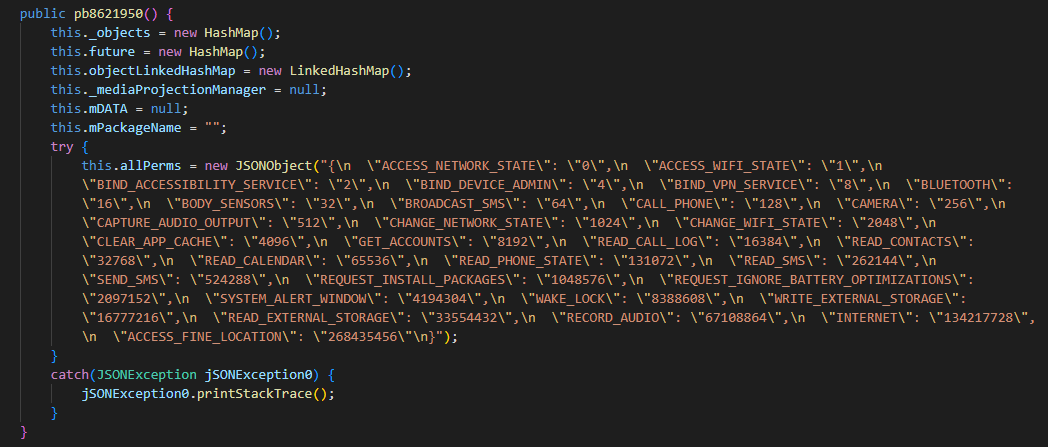 In addition, the malware has an autostart functionality when the targeted mobile device loads. It is worth noting that the application partially matches and has similar functionalities to the code of the application Secure VPN_3.9_apkcombo.com.apk (SHA-1: c6effe7fcd87f643aebc427e127dd7b00865eafd), which was discovered by Group-IB Threat Intelligence experts in as early as 2021.