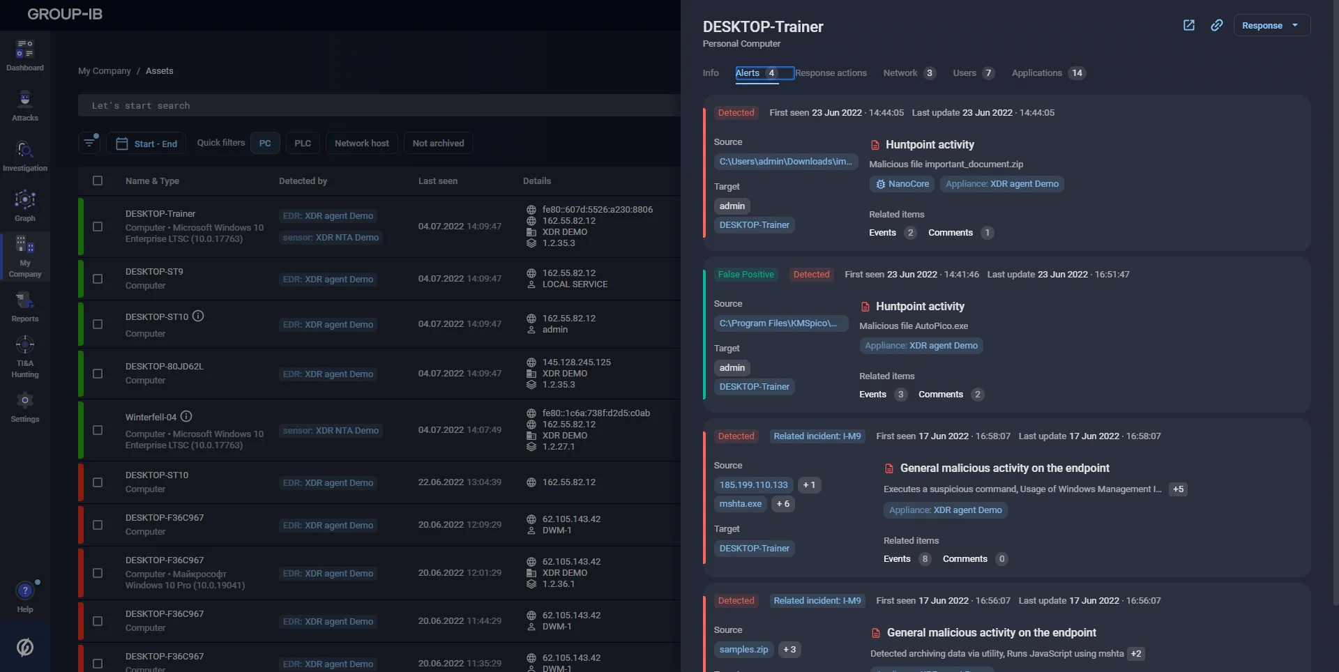 Events from hosts, traffic, and email pass through XDR. This provides visibility to all applications and devices, which is an important opportunity to create an inventory of what is on the network, which in turn is an integral process for ensuring that any organization is secure. Group-IB XDR provides several unique advantages at once: