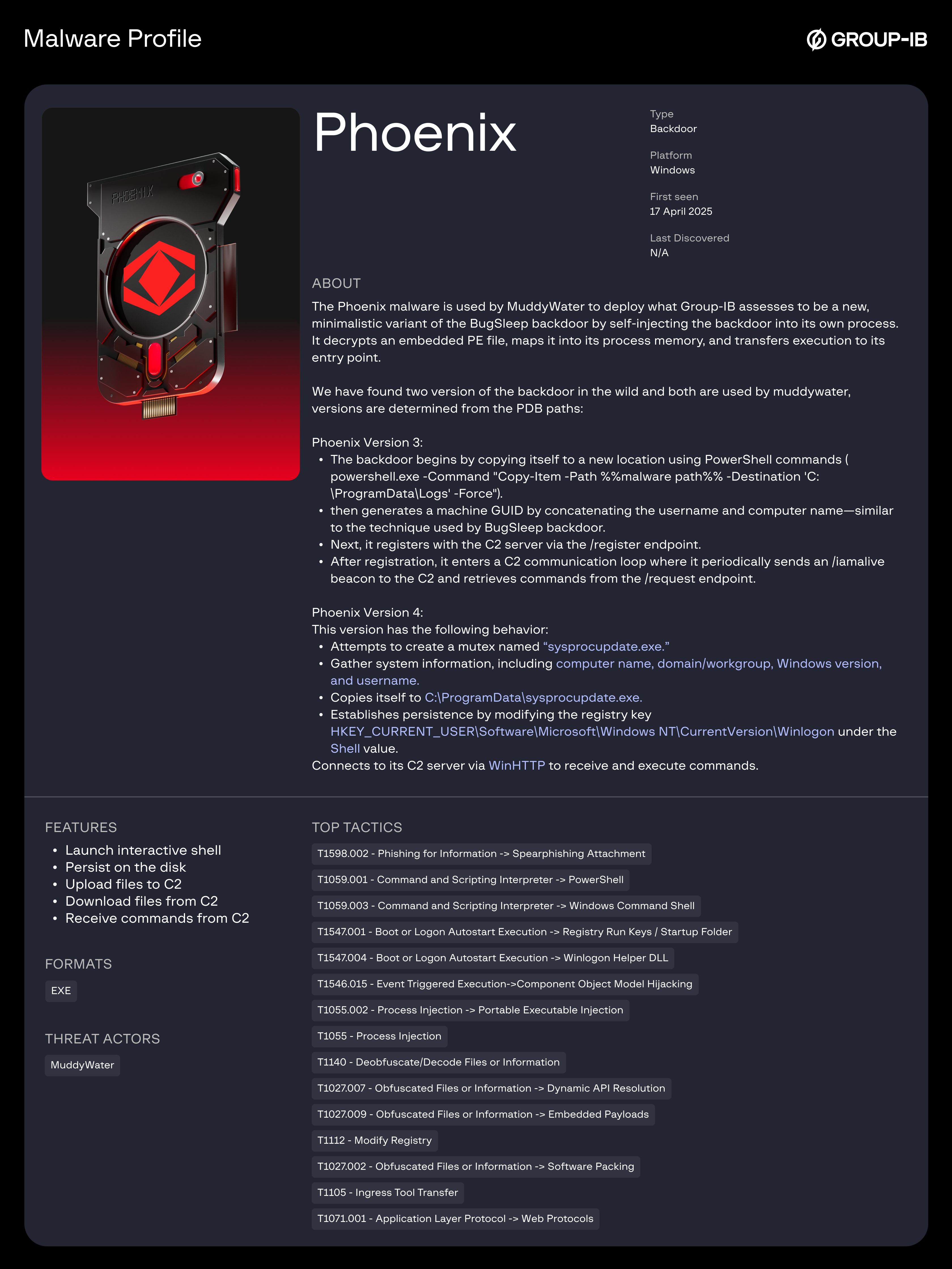 Group-IB customers can access our Threat Intelligence portal for more information about MuddyWater and Phoenix malware profiles.