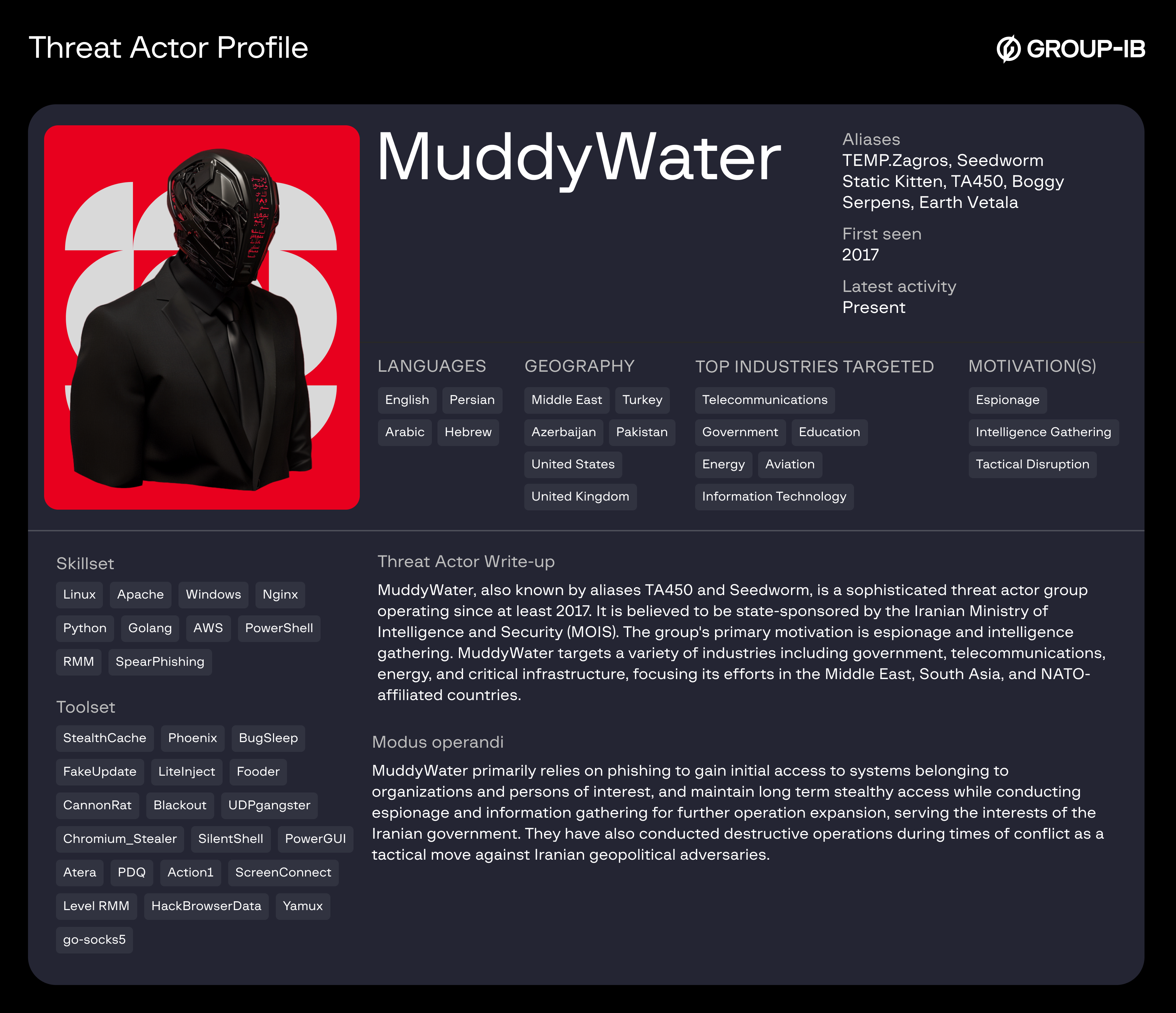 Group-IB attributes this campaign to the Iran-linked threat actor MuddyWater with high confidence, based on the tools, techniques, and procedures (TTPs) observed. The incident underscores how state-backed Threat Actors continue to exploit trusted channels of communication to evade defenses and infiltrate high-value targets.