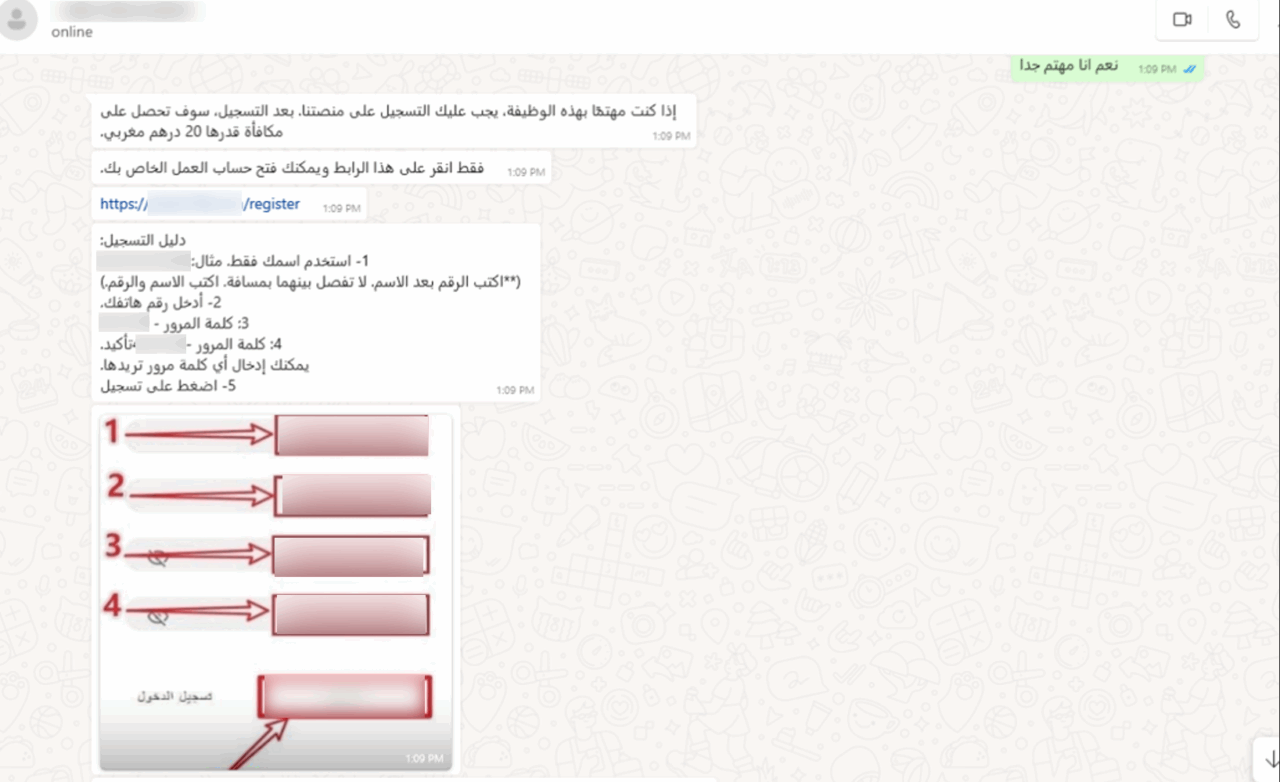 Once a user clicks, the ad usually redirects them to a WhatsApp or Telegram group, or to a fake website posing as a recruitment portal. From there, the “recruiter” asks for personal details such as: