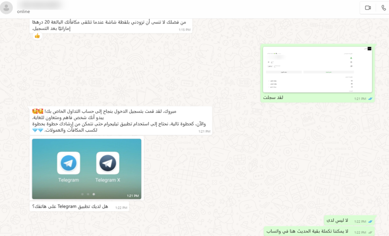 - Use of WhatsApp and Telegram for direct communication, applying social engineering tactics to scam victims of their money.
