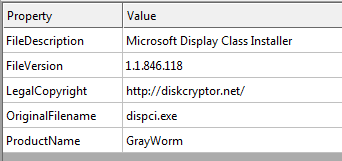 dispci.exe is an MBR encryption/decryption program, it also interacts with the driver that encrypts the MBR. The attackers called the program GrayWorm.