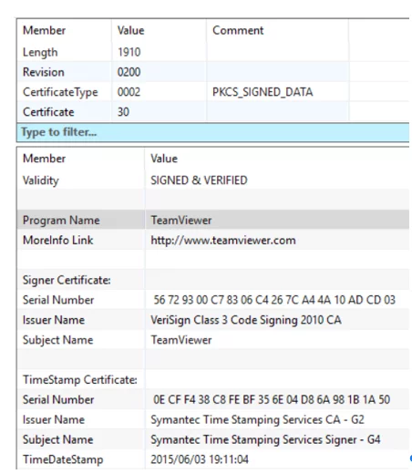 This looks like TeamViewer and is signed as TeamViewer, so does this mean it indeed is TeamViewer? Seems so, but it’s not that simple. Let’s take a look at the import table: