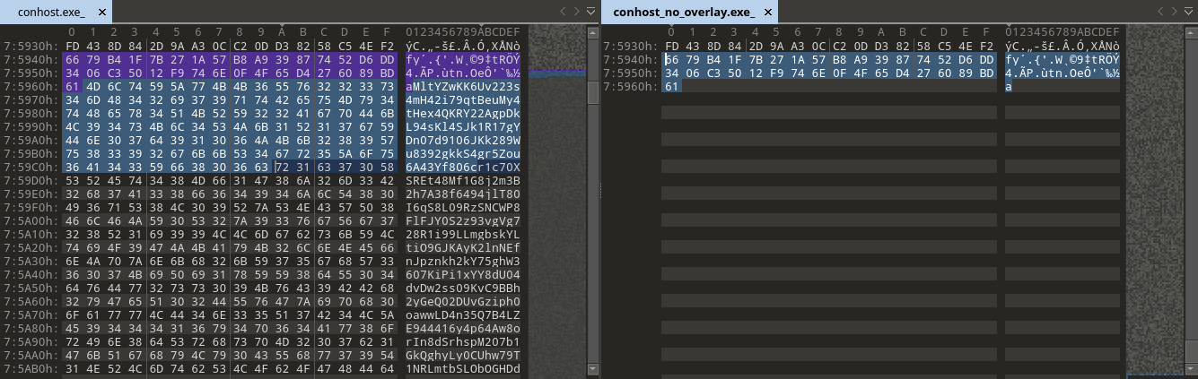 Bisonal.Dropper creates a file “%AppData%\Roaming\conhost.exe” (Bisonal.DoubleT backdoor). It records random overlay data to “conhost.exe” to change the backdoor hash.