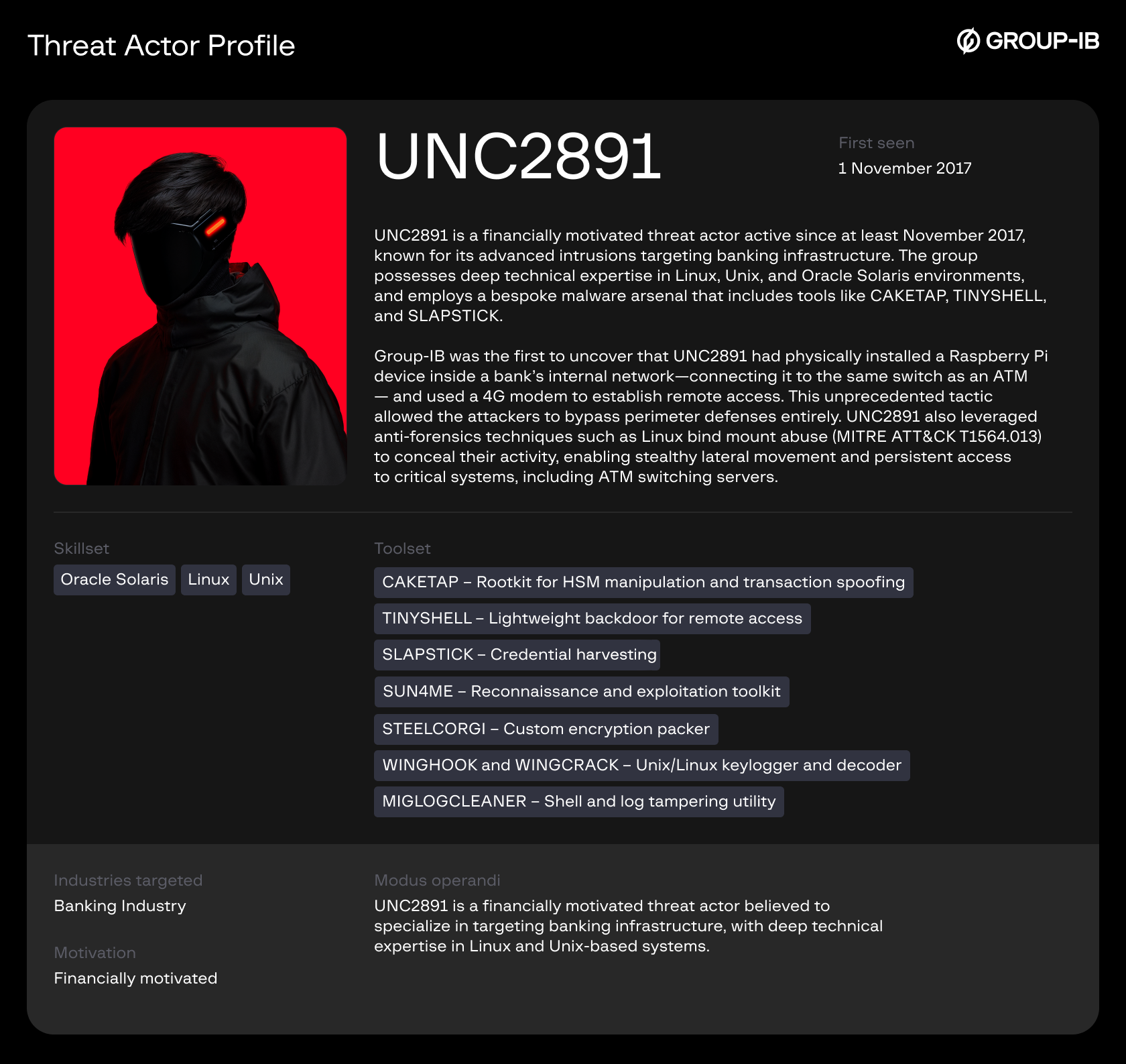 This blog uncovers a unique, stealthy approach used by a financially motivated threat actor group to compromise critical banking infrastructure. It reveals a previously undocumented anti-forensics technique (now recognized in MITRE ATT&CK), backdoor presence invisible to process listings, and a rare instance of physical network compromise using embedded hardware.