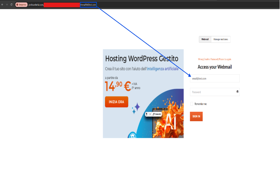 The attack usually begins with a classic spear-phishing lure. Victims receive an email designed to create a sense of urgency, such as a warning about an expiring service or a failed payment—tactics that Aruba itself warns its customers about. The email contains a link to one of many phishing pages that meticulously mimic the official Aruba.it webmail login portal.