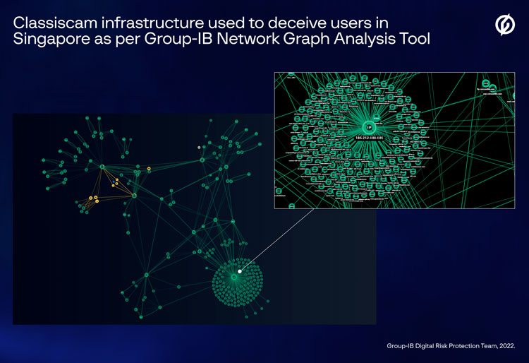 The network infrastructure of Classiscam operators targeting Singapore. Source: Group-IB Graph Network Analysis tool
