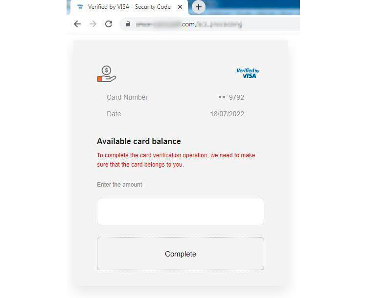 Additionally, the scammers attempt to check the victim’s bank account balance, to identify the most “valuable” cards as shown on the phishing page below.