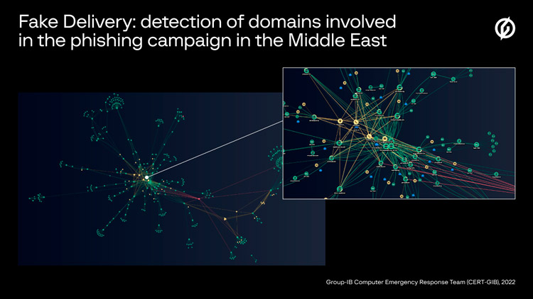 Using its patented Network Graph Analysis tool Group-IB researchers were able to unveil the links between infrastructures used for attacks in the Middle East: