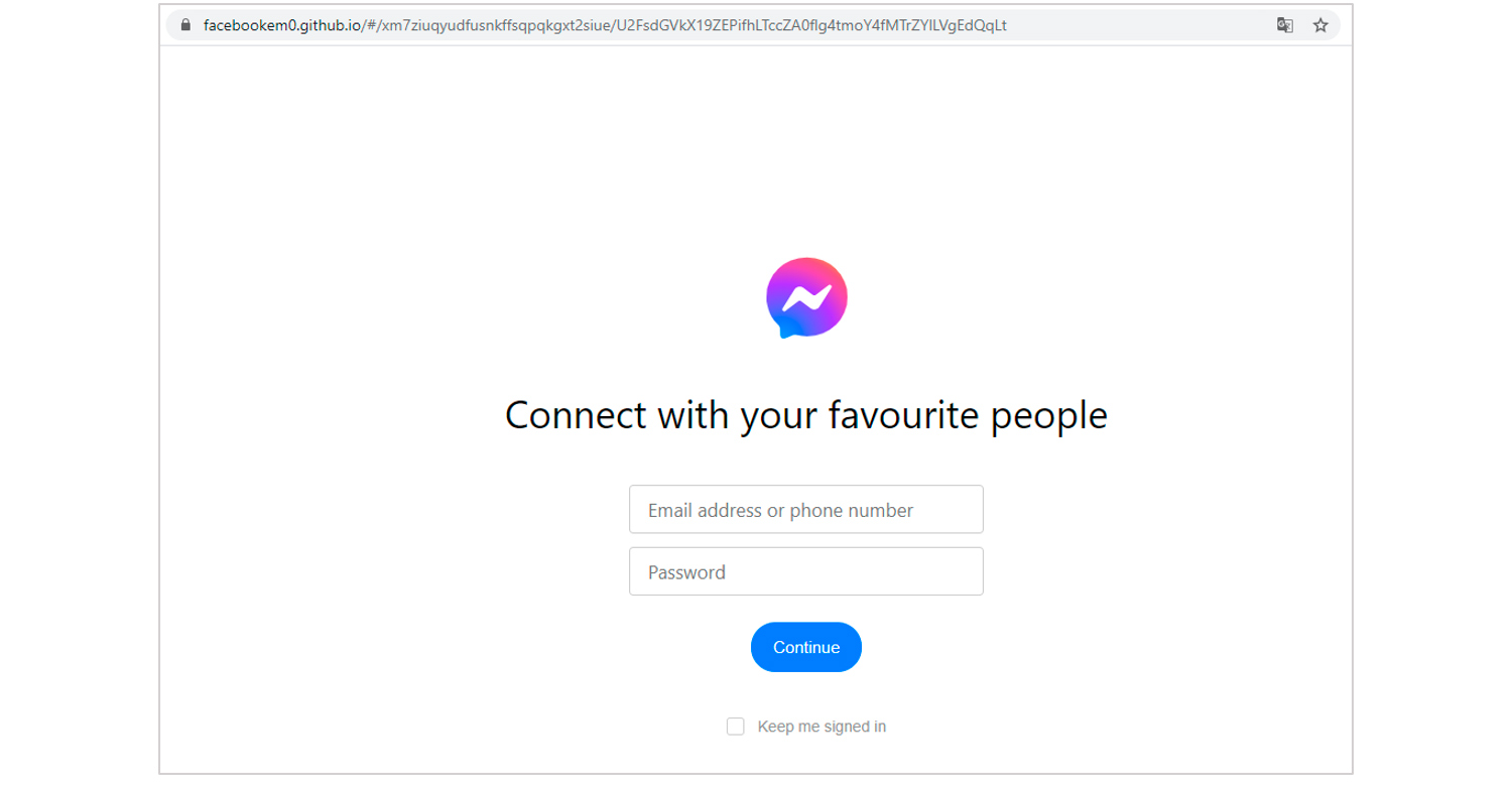 To facilitate the moderation process in Facebook and bypass its scam filters, scammers used shortened links created with the help of such services as linktr.ee, bit.ly, cutt.us, cutt.ly, and rb.gy. After clicking on the link that is supposed to lead to the download of the app’s updated version, the user finds themselves on a fake Facebook Messenger website with a login form, where they’re asked to enter their credentials. Scammers used such platforms as blogspot.com, sites.google.com, github.io, and godaddysites.com to register fake Facebook Messenger login pages.