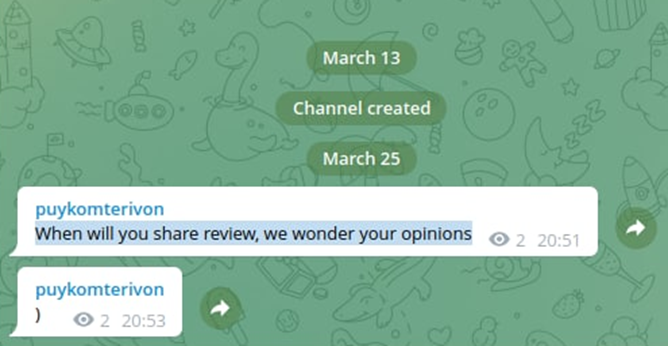 Figure 2: A Telegram user asking for a review of the Godfather banking trojan