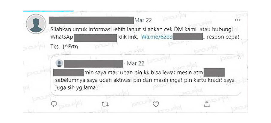 Group-IB, a global threat hunting and adversary-centric cyber intelligence company, warns of an ongoing fraudulent campaign targeting Indonesia’s largest banks that cybercriminals run on social media with the ultimate goal of stealing bank customers’ money. To lure victims, cybercriminals pose as bank representatives or customer support team members on Twitter. From January to early March 2021, this scheme grew in scope 2.5-fold to a total of 1,600 fake Twitter accounts impersonating banks currently being employed.