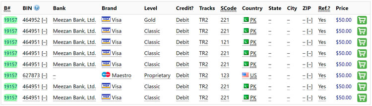 First set of dumps, titled «PAKISTAN-D+P-01», was set up for sale on Jan. 24, 2019 and included 1,535 cards, 1,457 of which were issued by Meezan Bank Ltd. It is worth noting that this batch of cards was not announced on the forum.