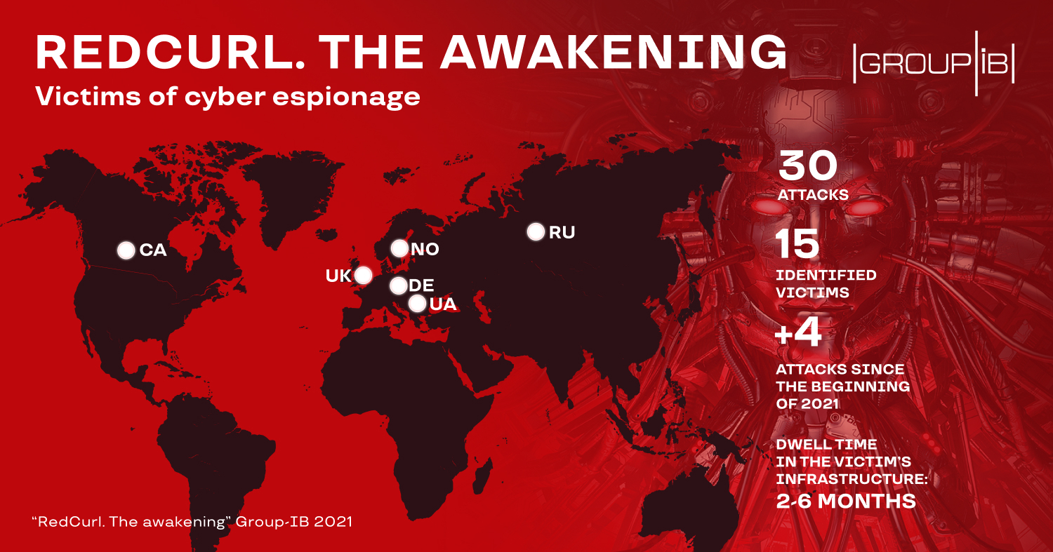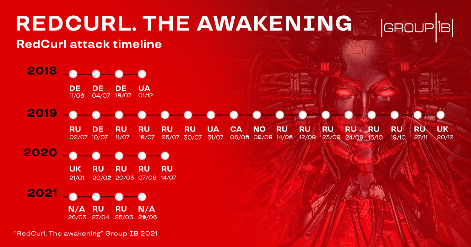 Last year, in the report “RedCurl. The pentest you didn’t know about” Group-IB researchers described for the first time a new Russian-speaking hacker group that they had codenamed RedCurl. Between 2018 and 2020, the threat actor carried out at least 26 attacks. Group-IB identified 14 victim organizations across various countries and industries. Victims included companies in the fields of construction, finance, consulting, retail, insurance, and law located in the UK, Germany, Canada, Norway, Russia, and Ukraine. Seven months later, in 2021, RedСurl attacks resumed.