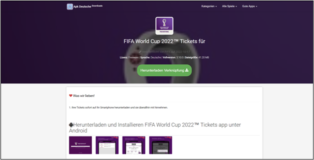 Scammers also created roughly 40 fake applications in the Google Play Store that are available for download. These applications promise users access to tickets from the games. The applications utilize the FIFA World Cup 2022 brand to confuse users and get them to download the fake application.