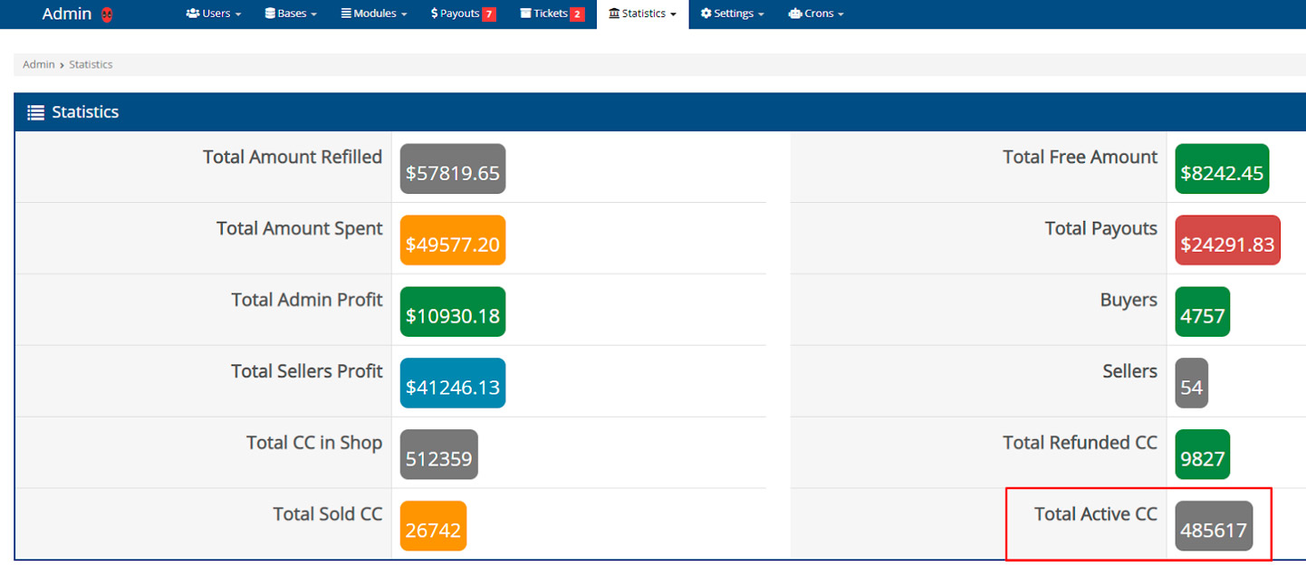 The analysis of the freshly exposed database found that the information was new as it indicated the latest user activity timestamps. In total, the databased revealed the records of 4 cardshop admins, 90 sellers, and 12,250 buyers of stolen data, including their nicknames, hashed passwords, account balance, and contact details for some entries.