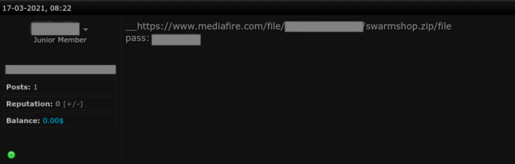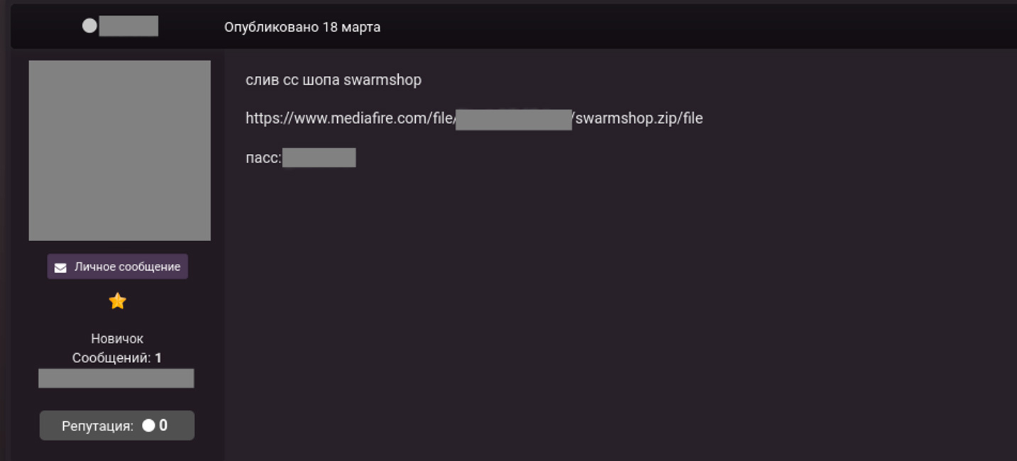 When, more than a year later in March 2021, a newly registered user posted a link and a password to the database of the Swarmshop card shop on different forums, the admins of the card shops didn’t believe it arguing it came from the last year’s breach after which they’d “fixed the bug”.