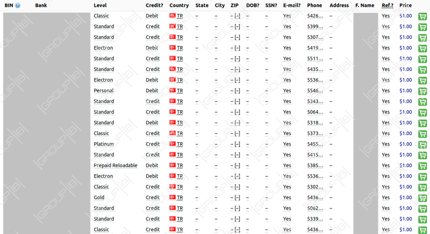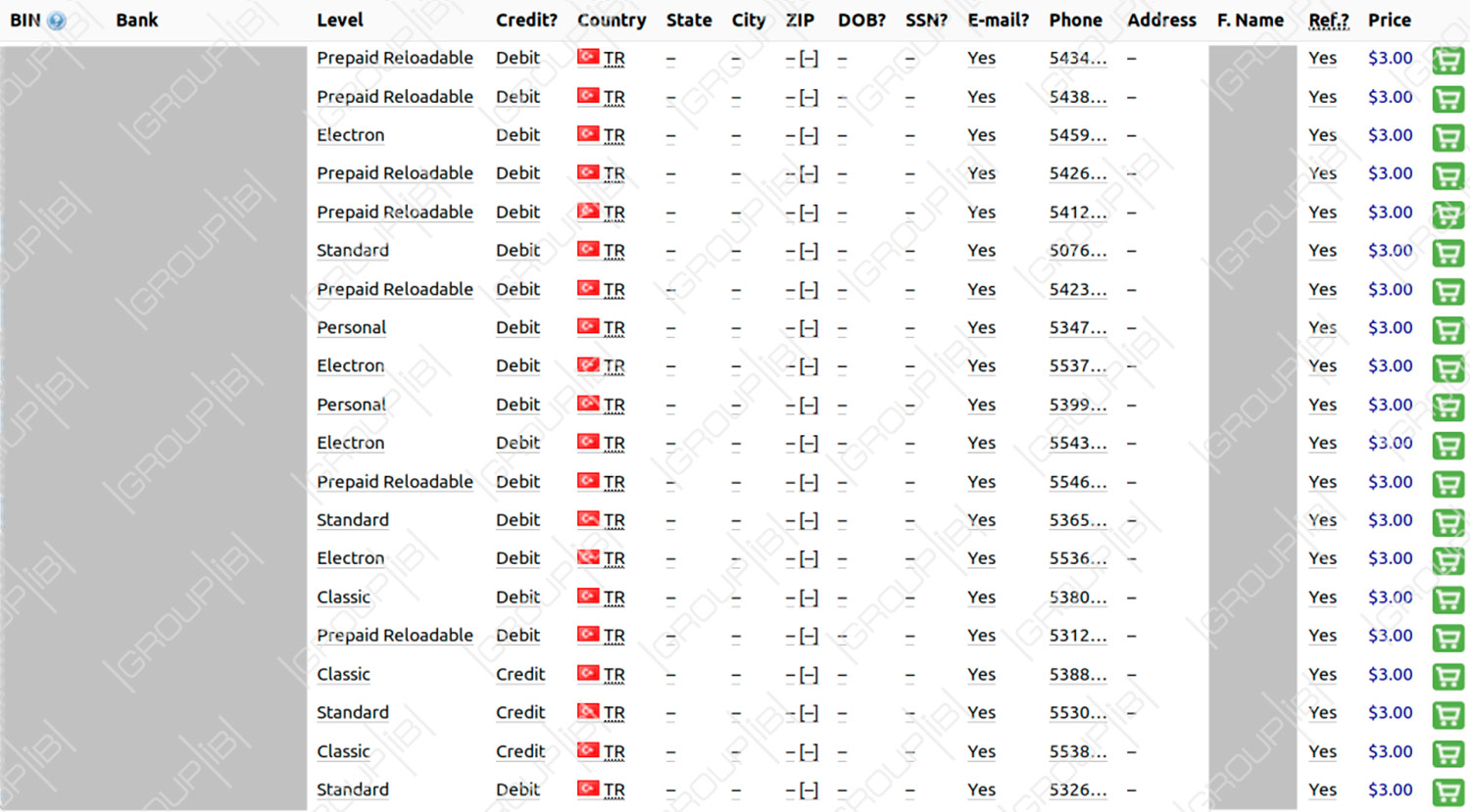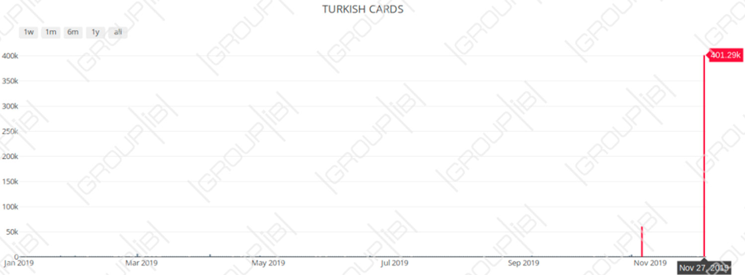 Group-IB, a Singapore-based cybersecurity company that specializes in preventing cyberattacks, has detected a massive upload of debit and credit card records mostly related to the largest Turkish banks on one of the most popular underground cardshops. More than 460,000 records in total were uploaded between Oct. 28 and Nov. 27. The underground market value of the database is estimated at more than $0.5 million. Upon discovery of this database, Group-IB has informed proper local authorities about the sale of the payment records, so they could take necessary steps.