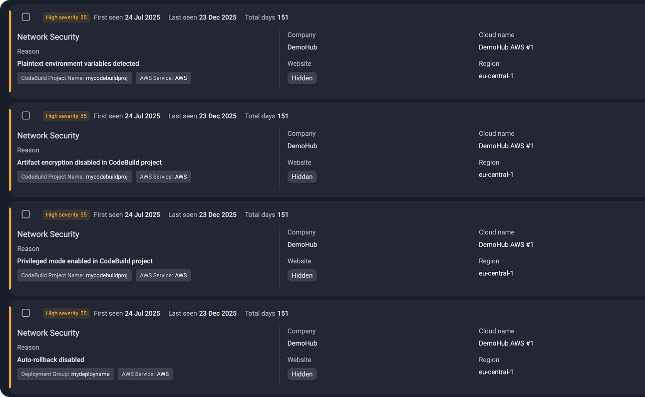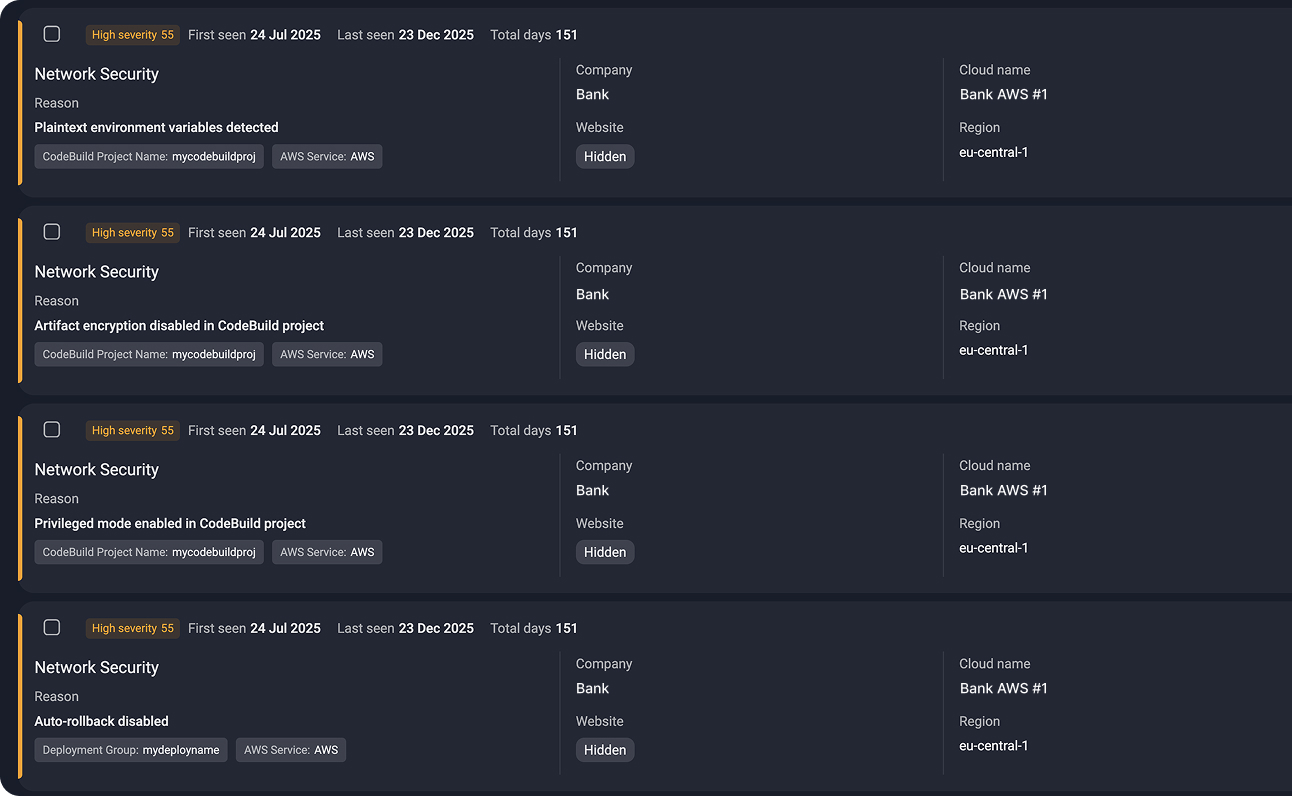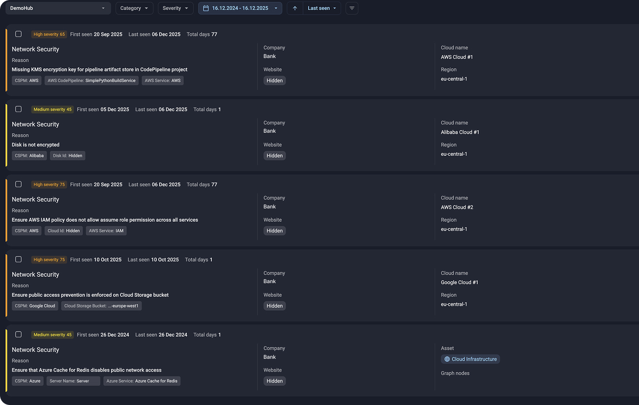 Group-IB combines posture findings with external visibility and threat intelligence, helping you focus on misconfigurations that are exploitable — not just technically incorrect.