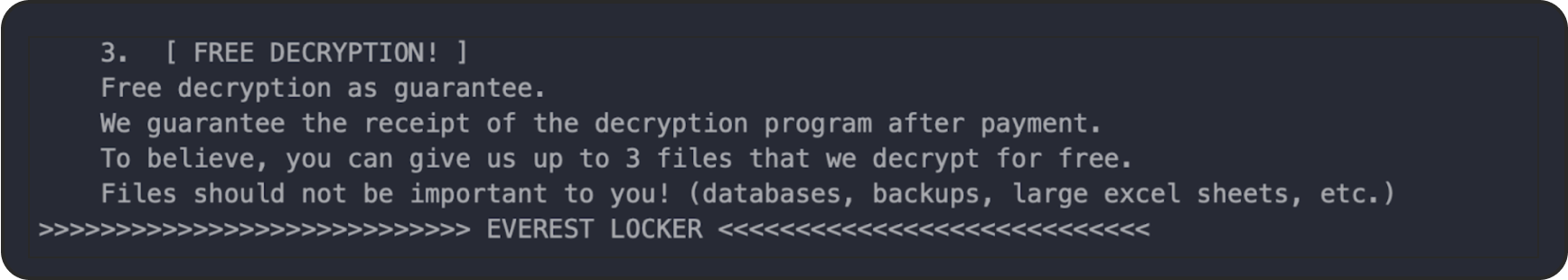 Many ransom notes offer to decrypt a few files for free to prove that the decryption works, as has been seen with Everest and Monti. These “free samples” help to build a sense of trust and encourage victims to negotiate. In some cases, ransom notes mention a chat portal through Tor where victims can engage with the attackers directly and negotiate the ransom amount.