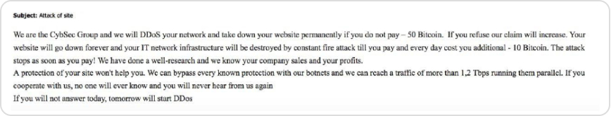 Figure 1. Extortion email of CybSec Group. Source: BleepingComputer