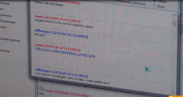 Figure 2. Method of placing an order from the botnet owner. Source: Group-IB, 2012. Translation of the text: -We want to make the order -Resource (for attack)? -uralmetalcompany.ru